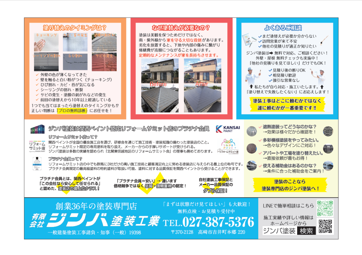 投稿日:2026.02.08 その他 折込チラシを配布しました! 今年から折込チラシを新しいデザインにしました。吉井町・高崎市(一部)・甘楽町・富岡市・藤岡市の範囲に配布しました。 相談・お問い合わせお待ちしております!